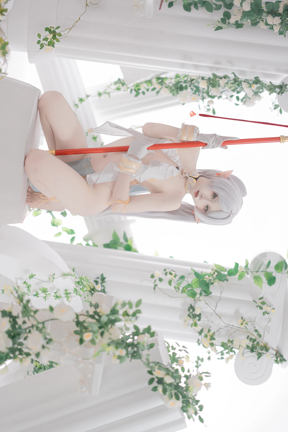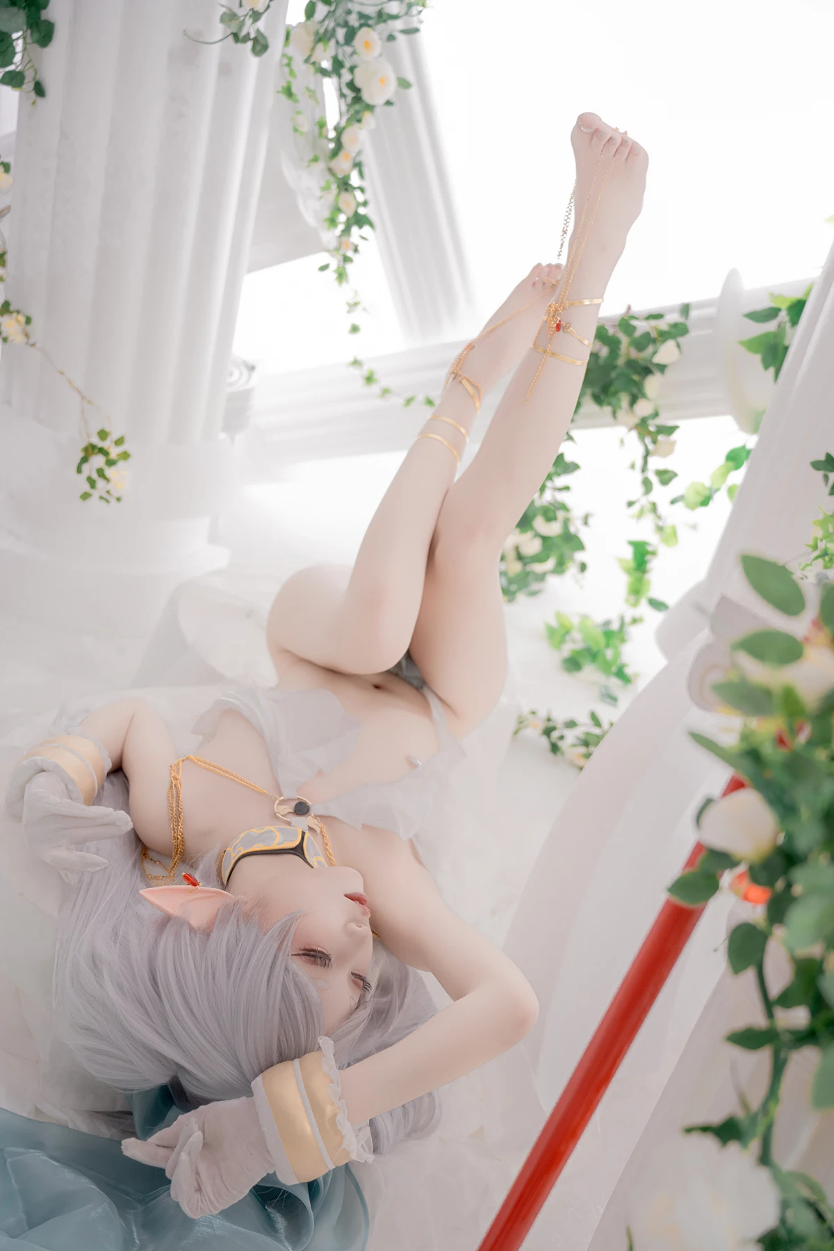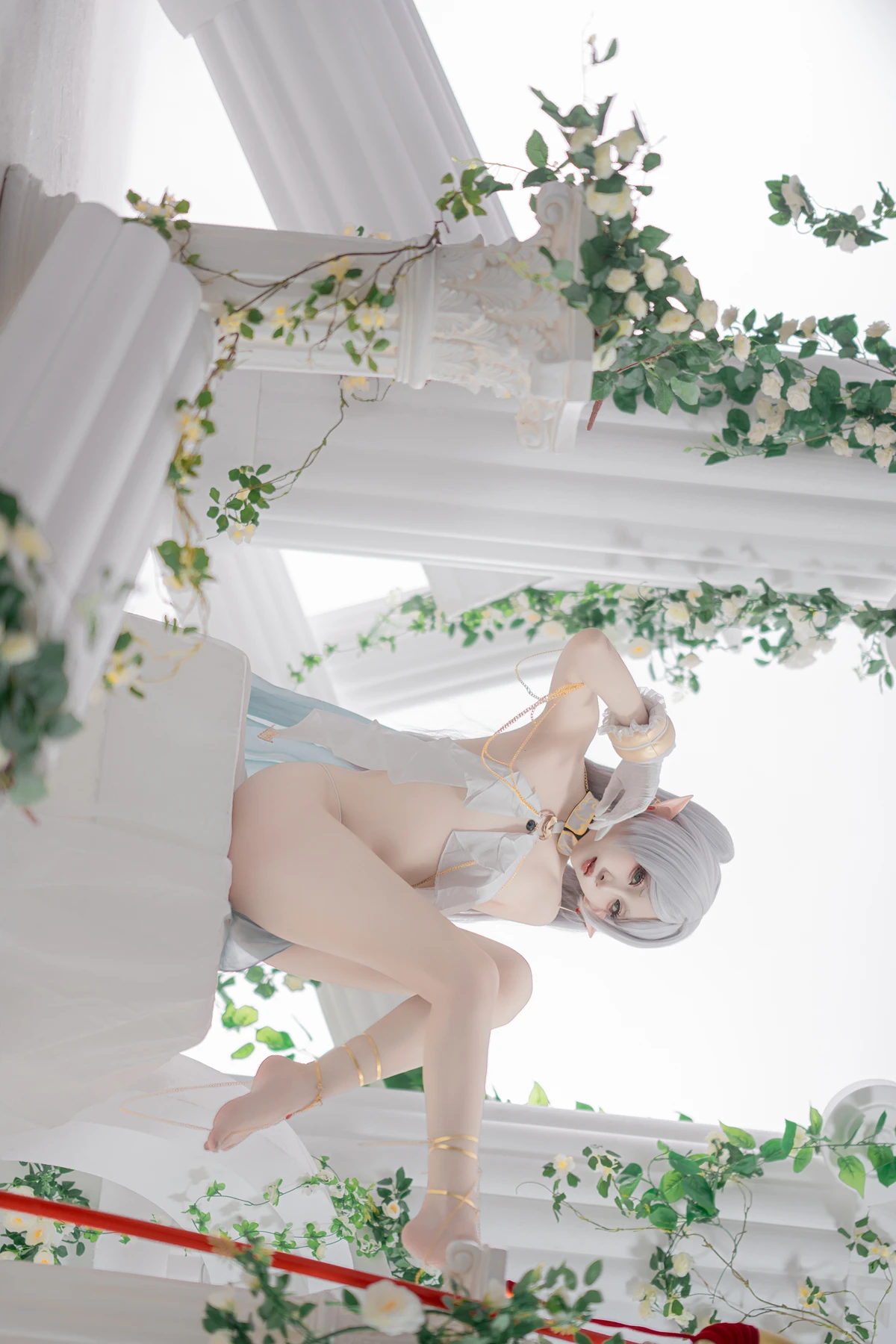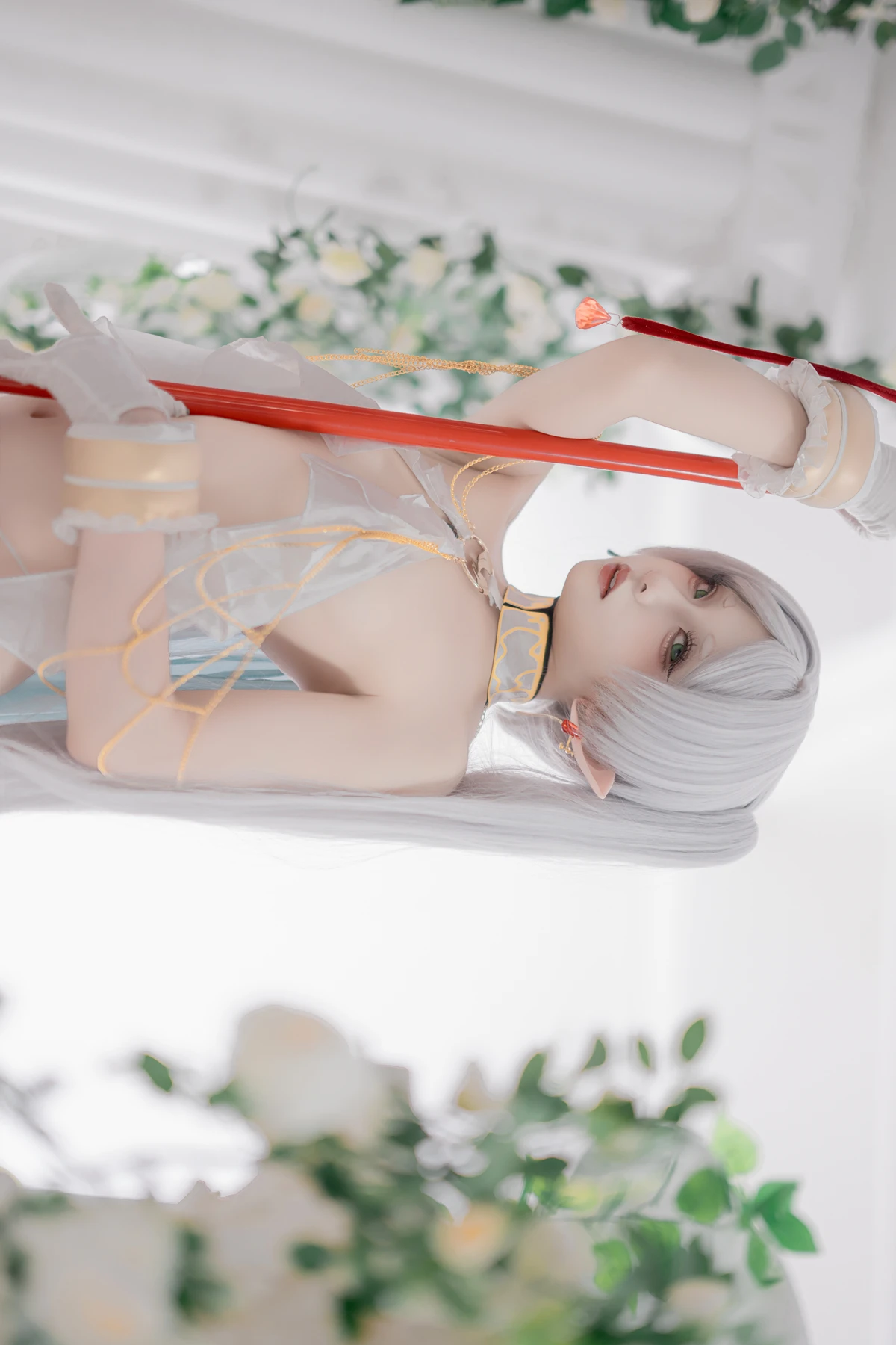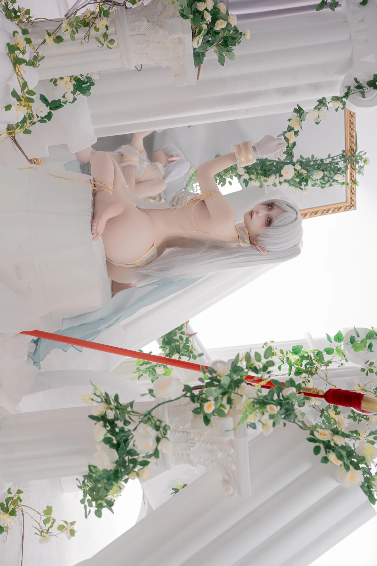 This photoshoot presents Frieren in a reimagined “dancer” style, giving the character a fresh and vibrant aesthetic while keeping the fantasy theme intact. The outfit incorporates light fabrics, flowing movement elements, and soft magical tones to match the world of the original series.