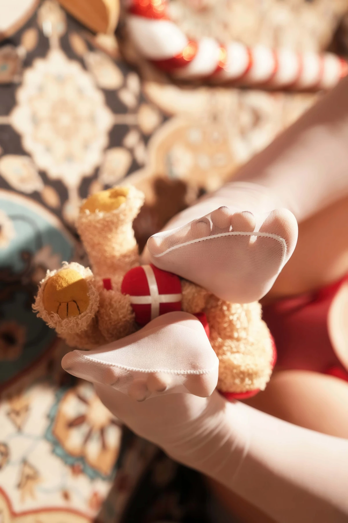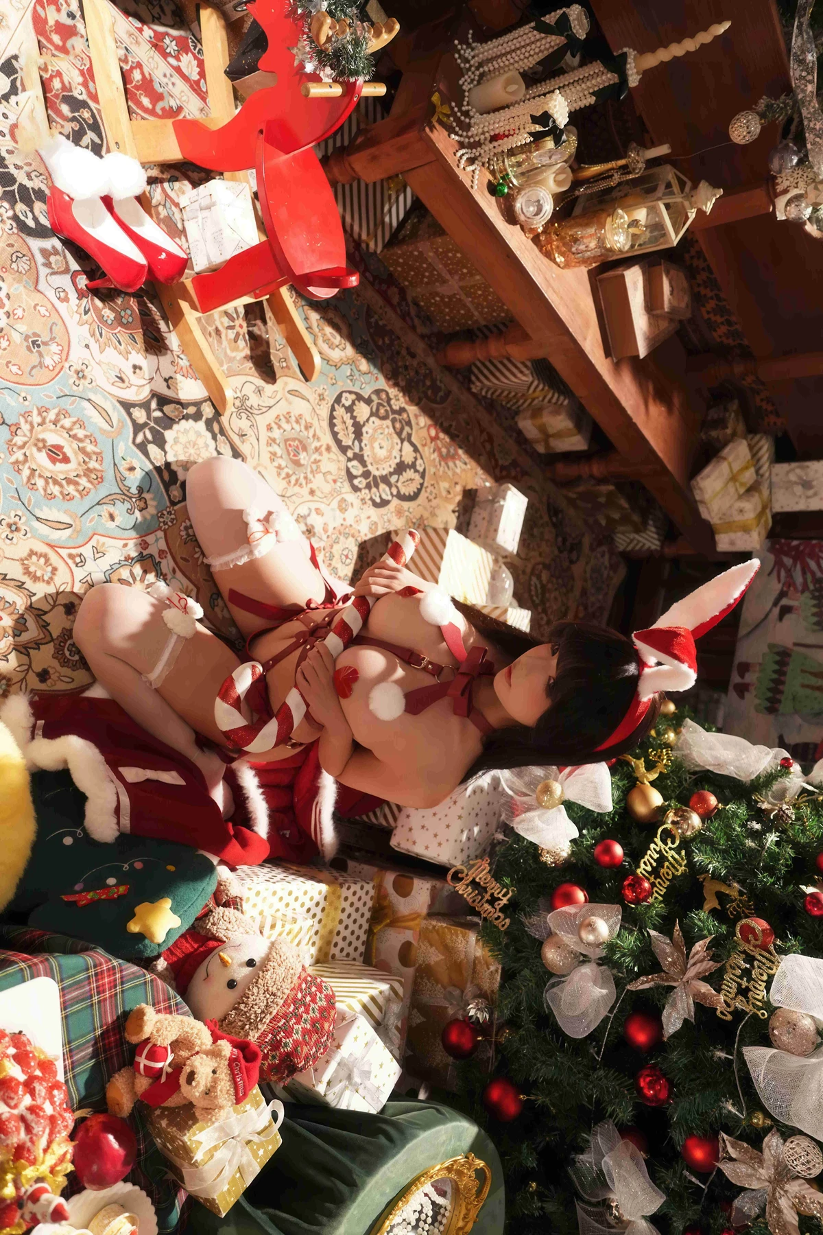 This photoshoot focuses on a festive holiday concept that mixes sweetness, light, and a touch of romantic storytelling. Yuuhui appears in beautifully coordinated Christmas attire, paired with soft, warm lighting that enhances the intimate seasonal mood.