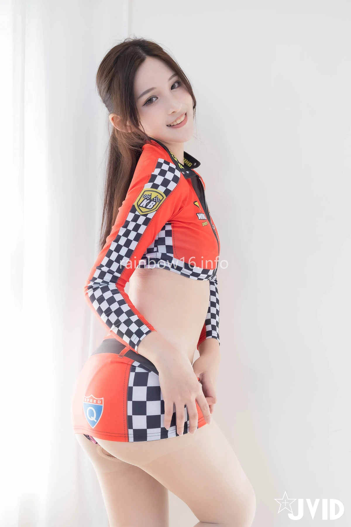 JVID 伊芙蝶 & Ash艾希 – 【四點全露】 首次合體珍藏❤ 賽車女郎油亮絲襪美腳蕾絲邊誘惑 Set.01